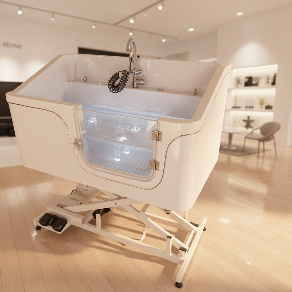Rampa Multifuncional Ecológica para Bañera de Mascotas con Cajón y Foco para Estación de Lavado de Salón de Belleza Canino