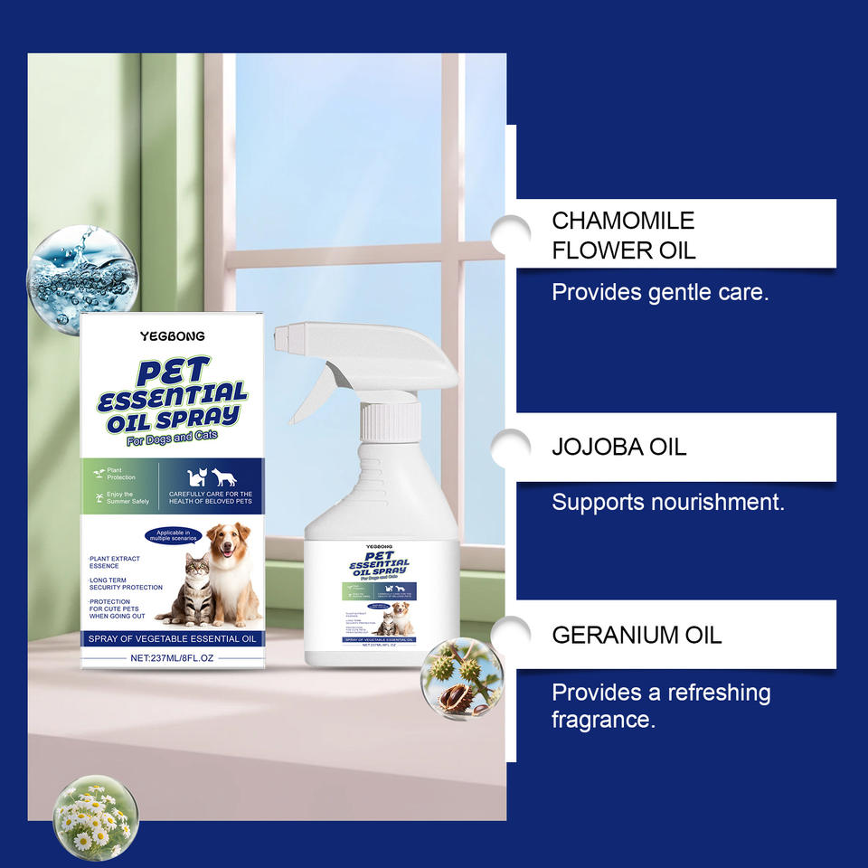 Spray de Aceite Esencial para Mascotas, Perros y Gatos, Extracto de Plantas, Protección para Exteriores, Spray Suave para el Cuidado de Mascotas