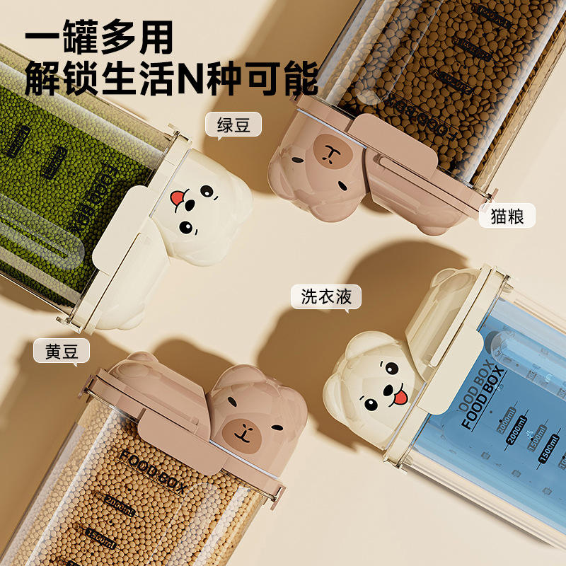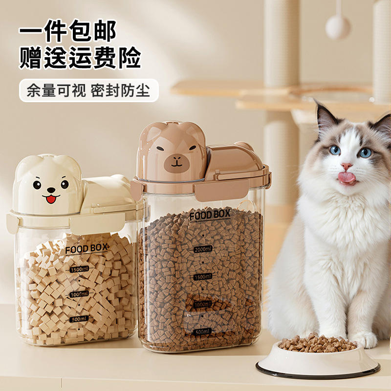 Contenedor de almacenamiento de alimentos para mascotas, transparente, hermético, de 1-2L, con tapa, para alimentación de perros y gatos