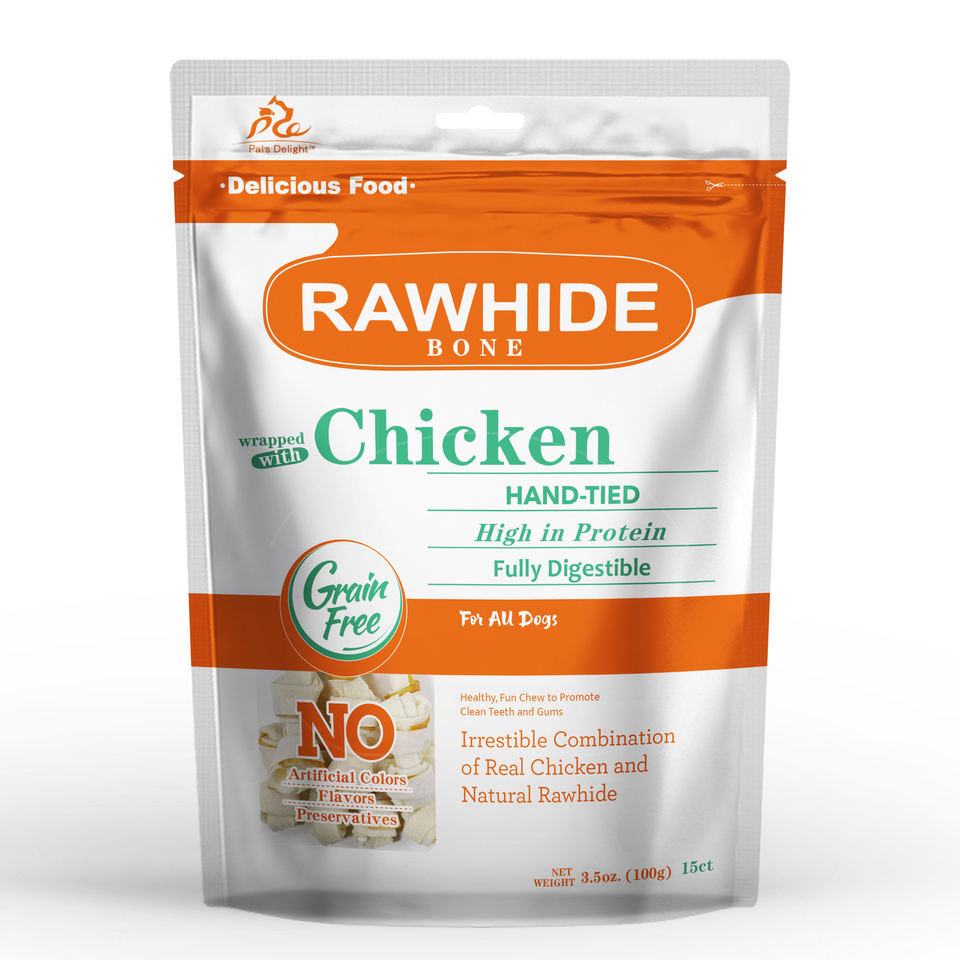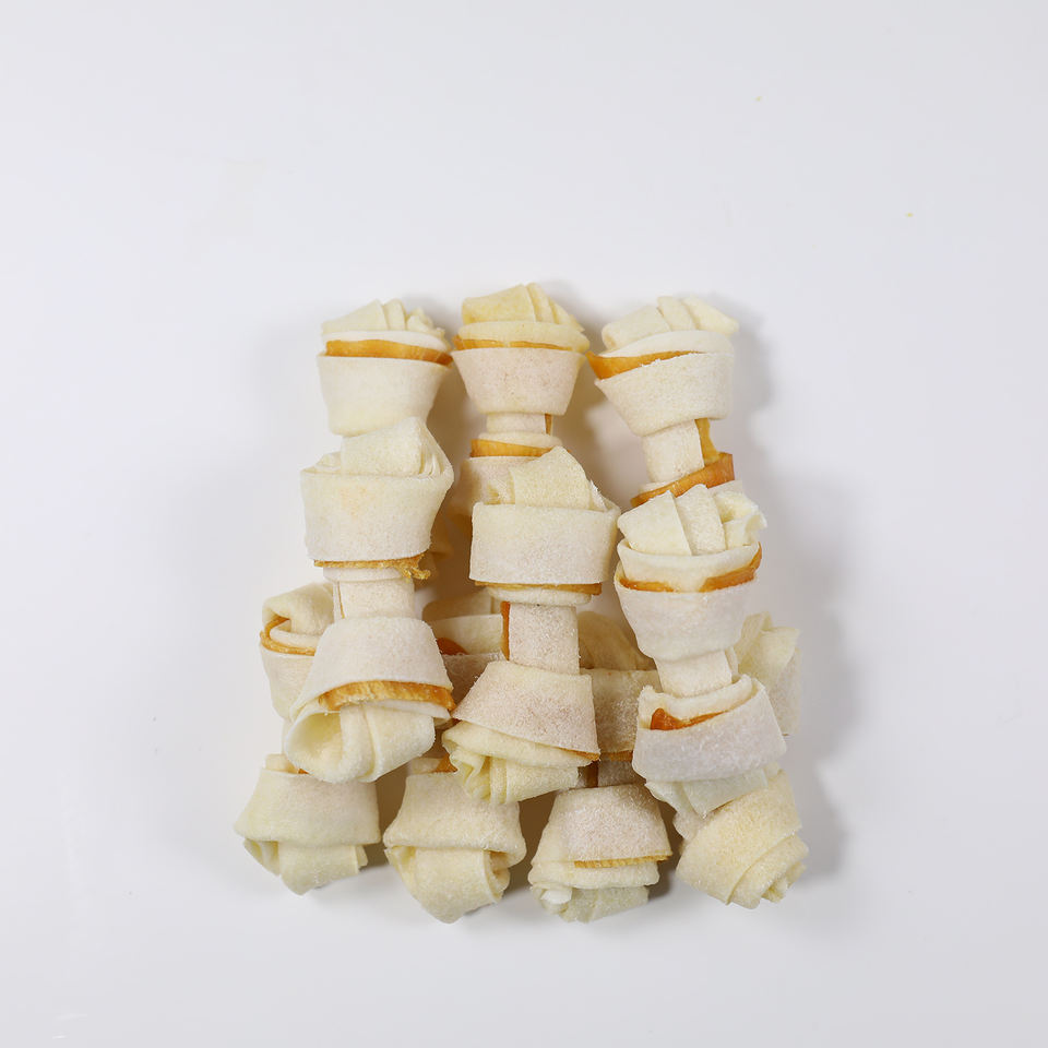 Nombre del producto:Logotipo personalizado color perro mascota tratar 2,5 "hueso de cuero con pollo