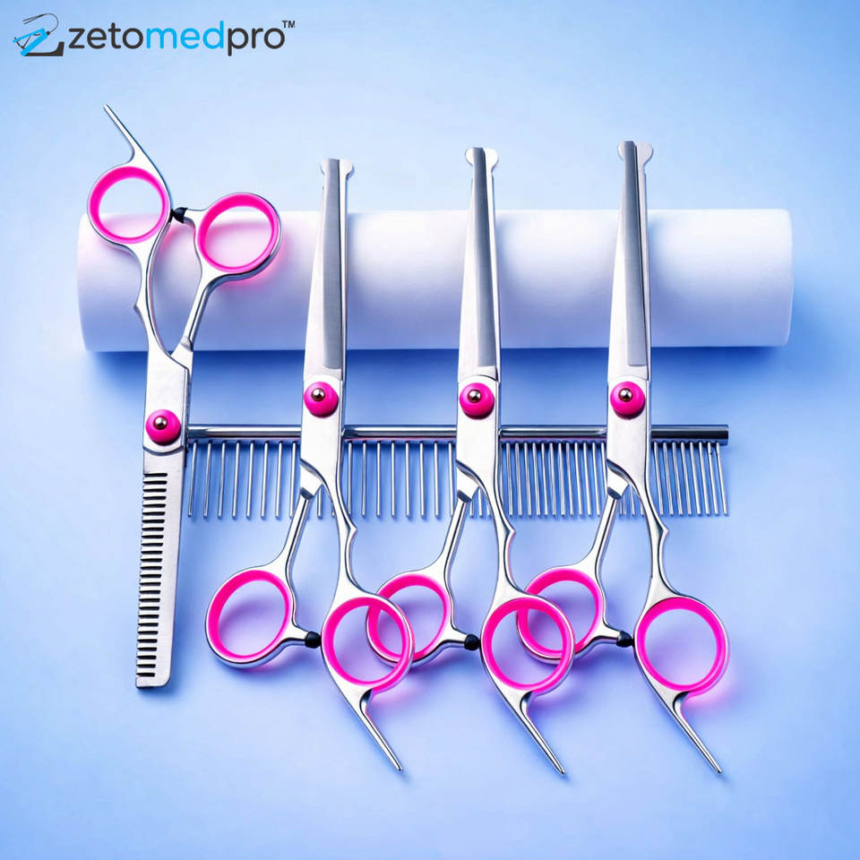 Kit de peluquería para mascotas, juego de tijeras de acero inoxidable de 4 piezas