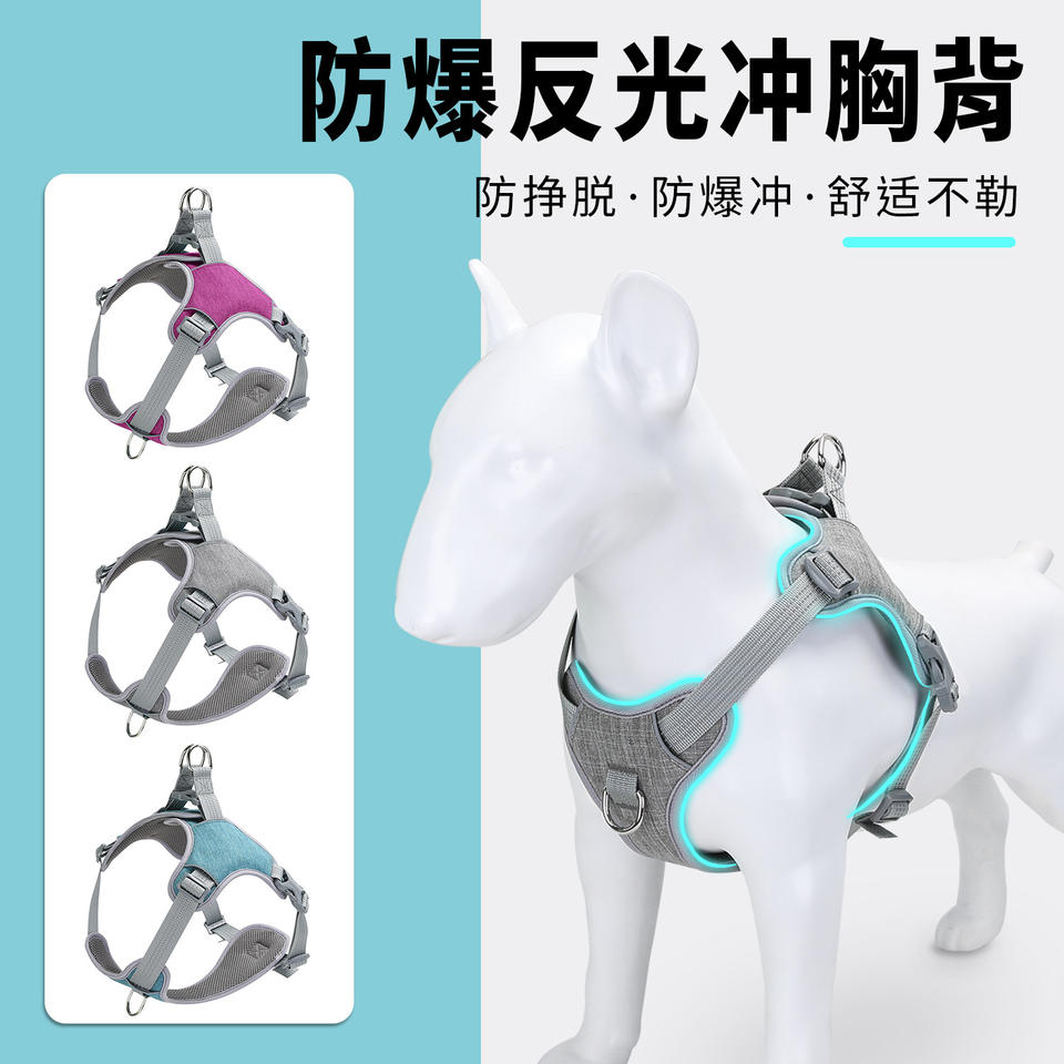 Arnés para mascotas, ajustable, transpirable, reflectante, duradero, cómodo, correa para el pecho para perros, azul, gris, rojo rosa
