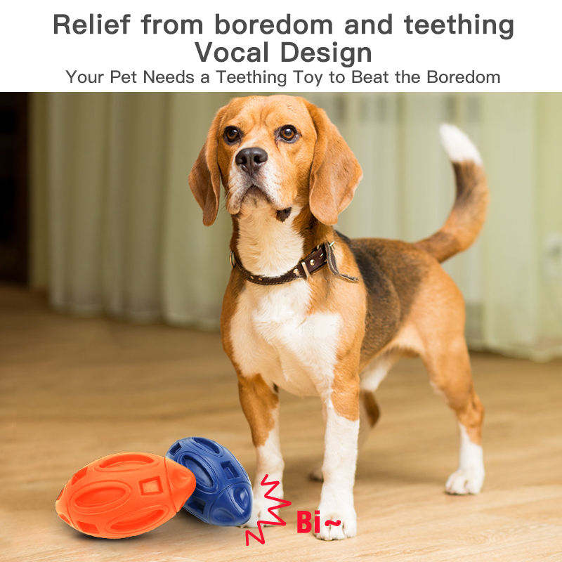 Pelota de rugby para masticar perros agresivos, juguetes de dentición chirriantes de goma indestructible para mascotas