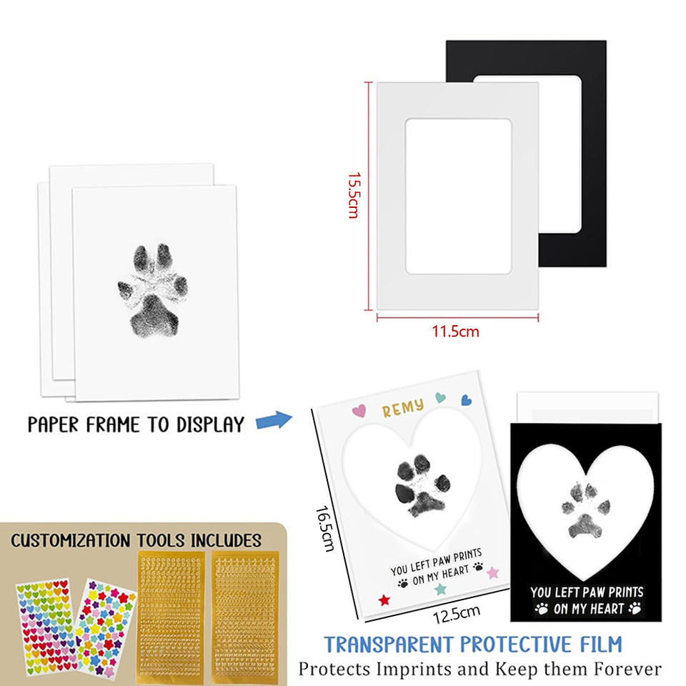 Juego de marcos de papel para recuerdos de mascotas con tinta sin necesidad de lavado para huellas de perros y gatos, 16 hojas, marcos blancos, diseño de corazón