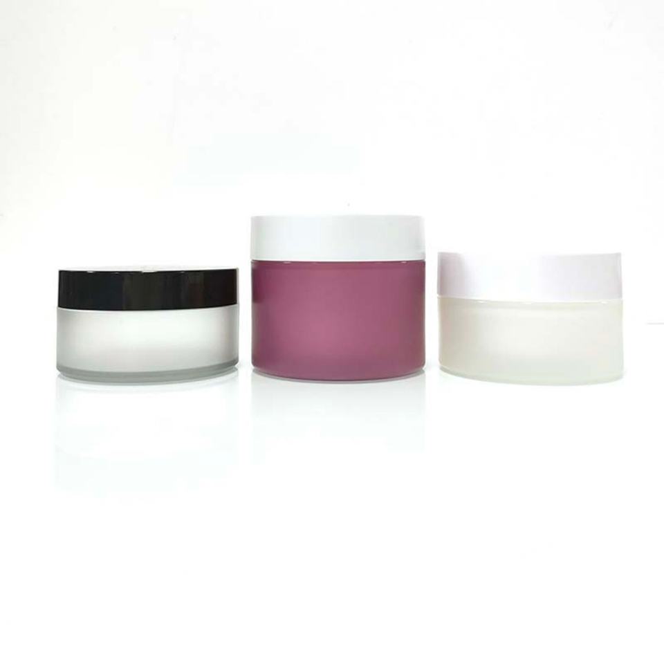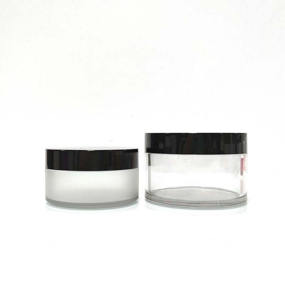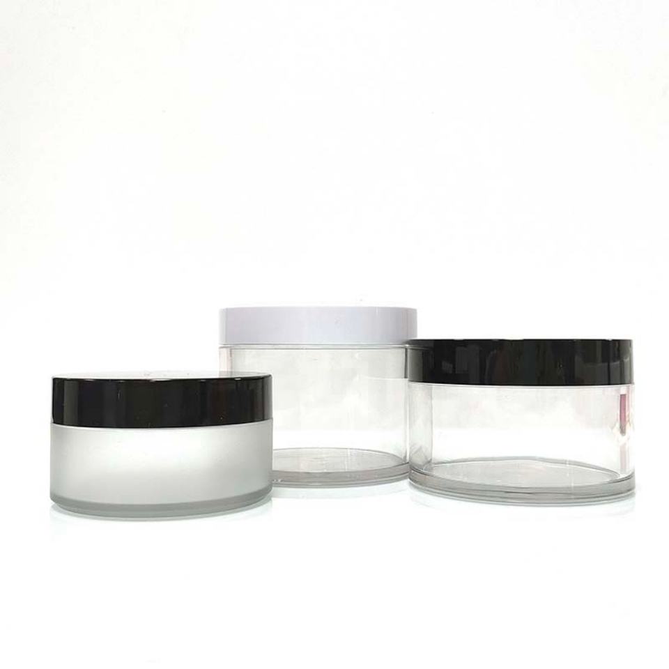 Tarros de Crema Cosmética de Plástico Esmerilado de 250 ml con Tapa de Plástico Negra, Color Mate