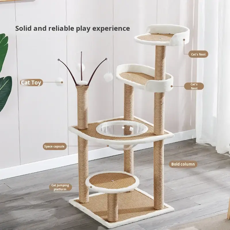 Solución Integral para Mascotas: Árbol para Gatos Grande de Alta Calidad, Moderno, con Rascador de Felpa Natural