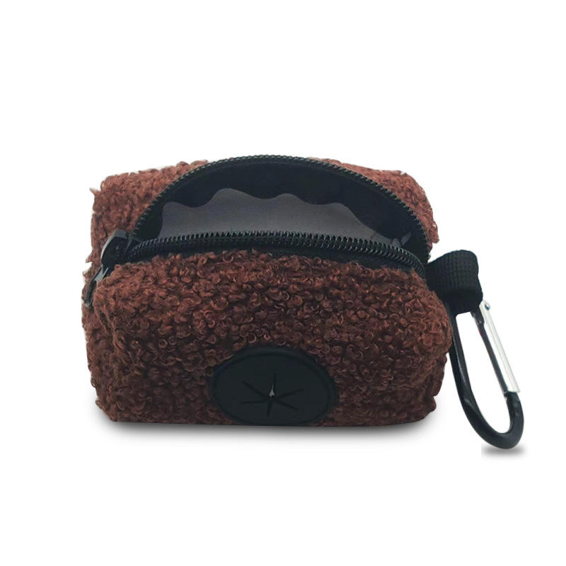 Bolsa de Almacenamiento para Excrementos de Mascotas, Color Café, Lana de Cordero, 10x5.5x4.5cm, con Mosquetón para Desechos de Perros