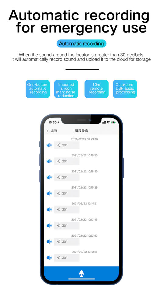 Características principales:Monitoreo de voz, grabación de voz, modo de reposo, alarma de baja potencia