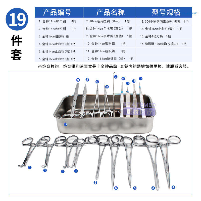 Instrumentos quirúrgicos para esterilización de mascotas (Juego de 19 piezas Jinzhong)