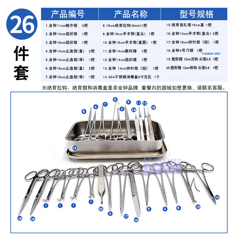 Instrumentos quirúrgicos para esterilización de mascotas (Juego de 26 piezas Jinzhong)