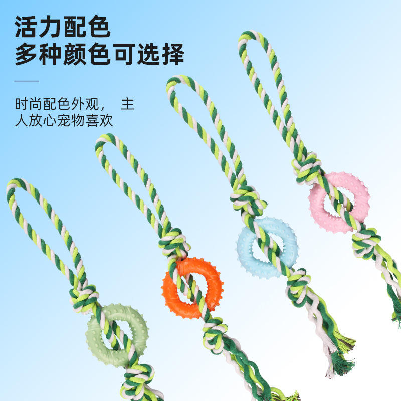 Cuerda de algodón de juguete para mascotas, cuerda de tracción de lazo de lunares, cuerda de molienda resistente a mordeduras, entrenamiento de nudos, juego de juguete para perros con alivio de autodiversión