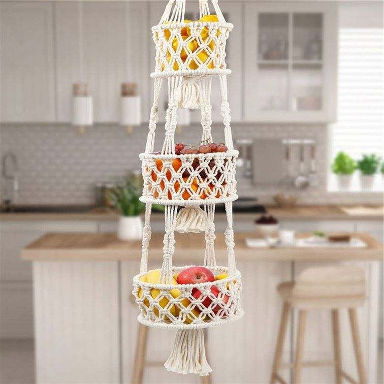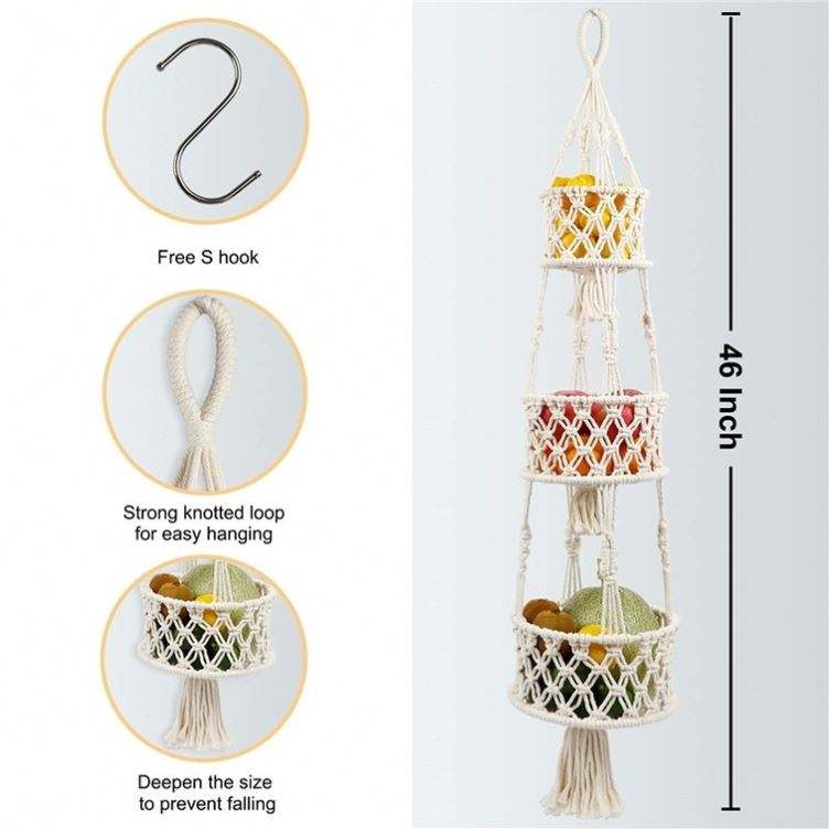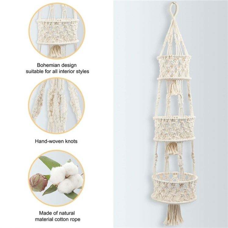 Petit Panier En Coton De Rangement Mural Suspensión Para Plantas Corbeille Fruits A 3 Niveaux Accrocher Au Porte