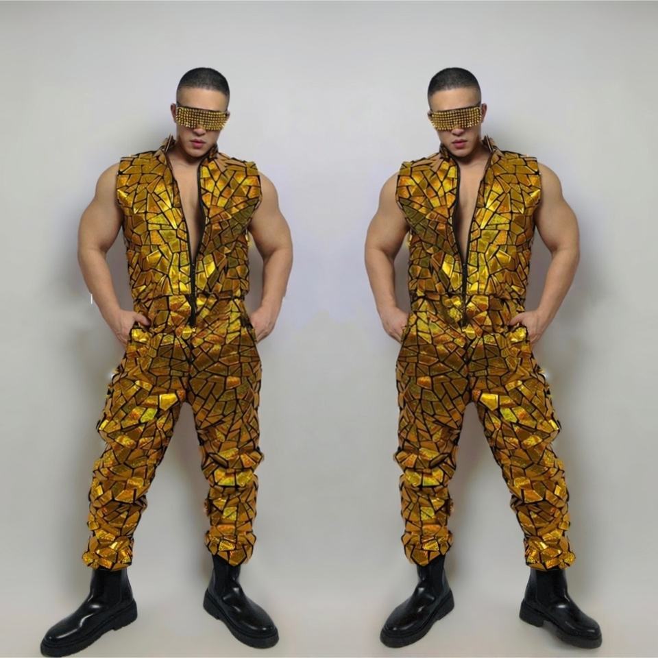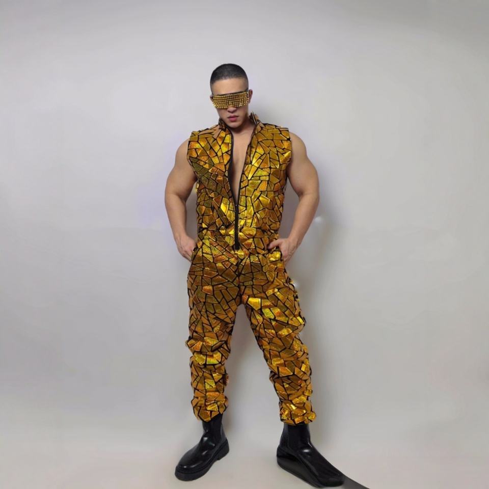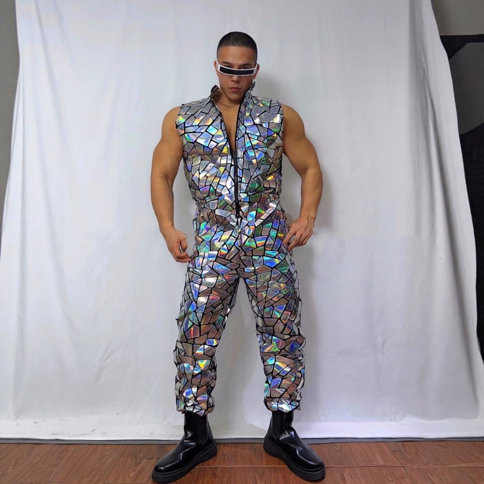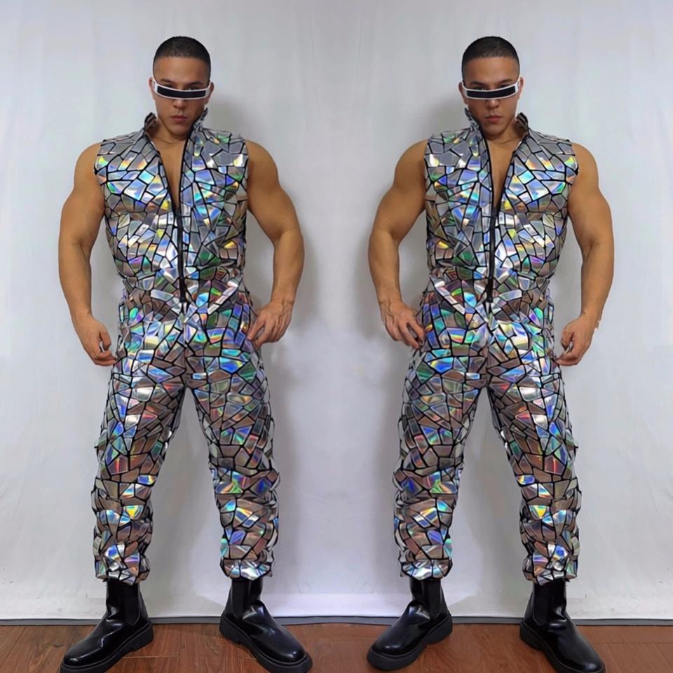 Traje de actuación unisex con lentes de espejo fantasma para fiestas temáticas de baile láser, discotecas/bares, uniforme de trabajo de una pieza