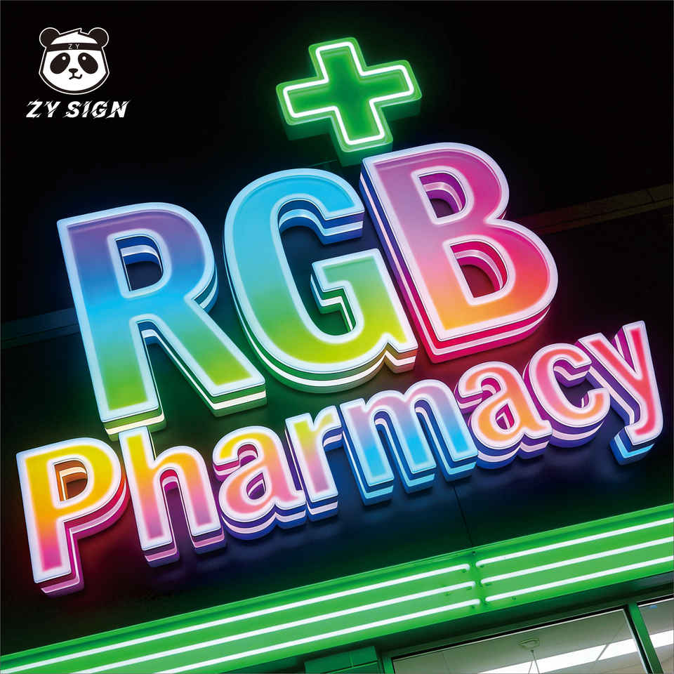 Letrero de Cruz Verde para Farmacia, LED Acrílico RGB Retroiluminado, Resistente a la Intemperie, Personalizado, Duradero