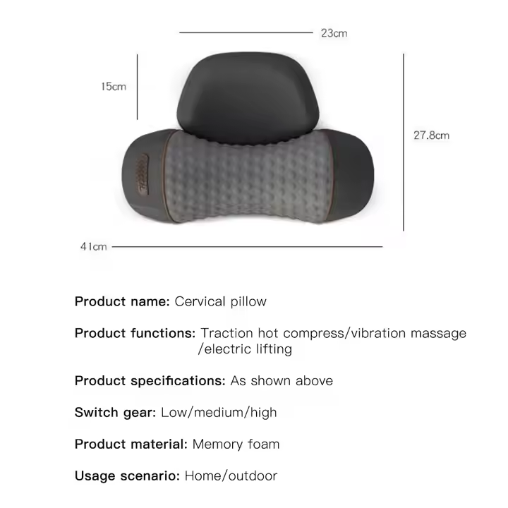 Phenitech Smart Pillow con tracción Compresa caliente Vibración Alivio del dolor Espuma de memoria Soporte para el cuello cervical Almohada de masaje de calor