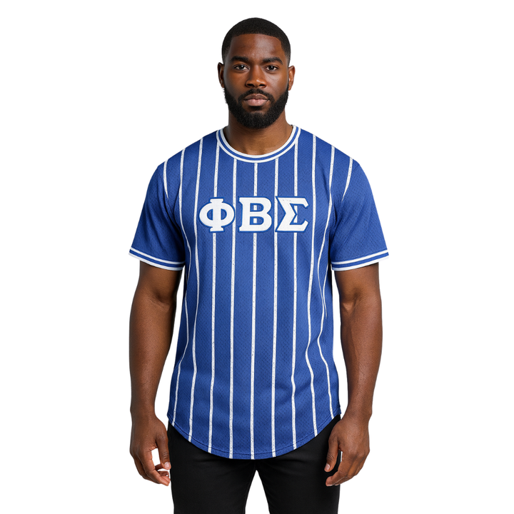 Phi Beta Sigma Blue Pinstripe Pullover Jersey de béisbol 100% malla de poliéster fraternidad griega ropa camiseta con bordado