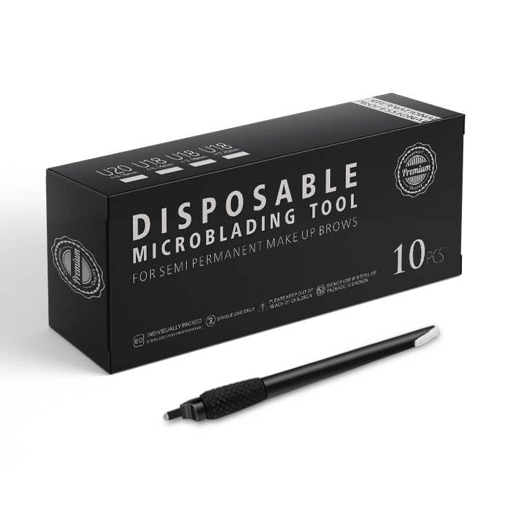 Phibrow estilo ceja negra desechables Microblading plumas 0,18mm 18U pines agujas de bordado de hojas de herramientas de mano con cepillo