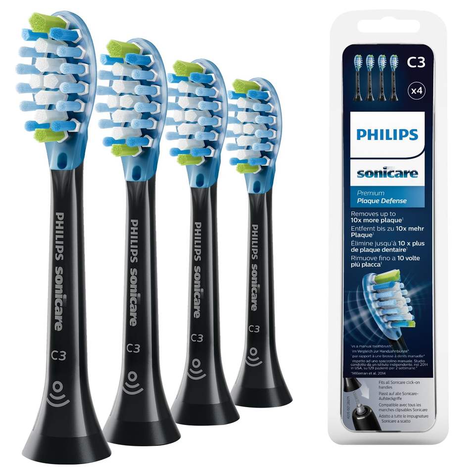 Philips HX9044/33 Premium Plaque Defense Cabezales de Cepillo de Dientes, Paquete de 4, Negro