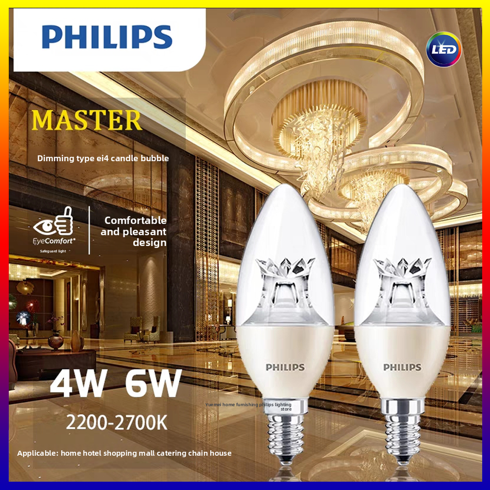 Philips Master LED Vela Bombilla 4W/6W 2200-2700K Blanco cálido Hotel E14 Fuente de luz PHILIPS Regulable B38 CL_AP LED VELA