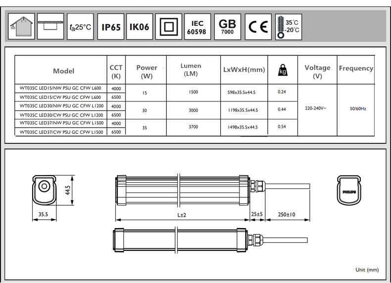 Luminaria LED Philips WT035 IP65, Ajustable, para Exteriores, Impermeable, de Instalación Rápida, Tri-proof