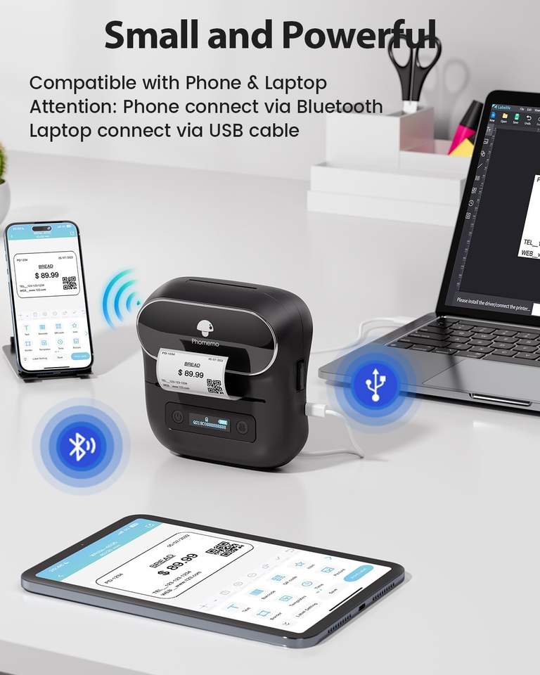 Phomemo M220 Label Maker Impresora de etiquetas de código de barras Impresora térmica inalámbrica de 80mm Dirección de ropa de correo Teléfono compatible Laptop