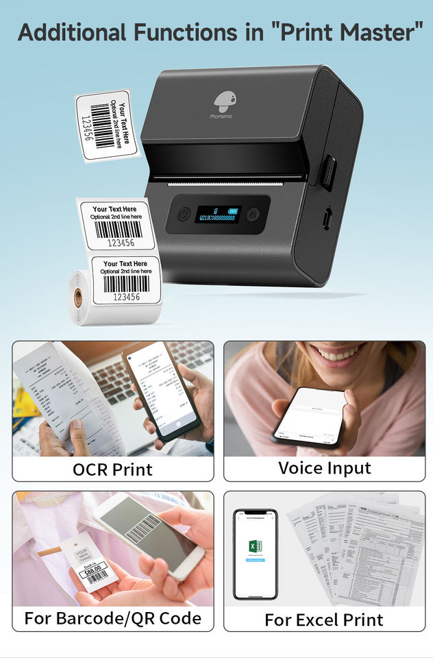 Impresora de Etiquetas Phomemo M221 BT de 3 Pulgadas, Impresora de Códigos de Barras para Etiquetas de Dirección, Logotipos y Correo, con Bluetooth, en Existencia