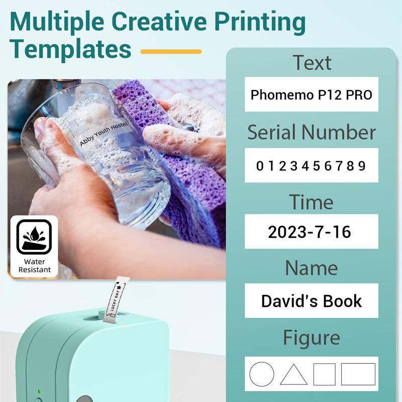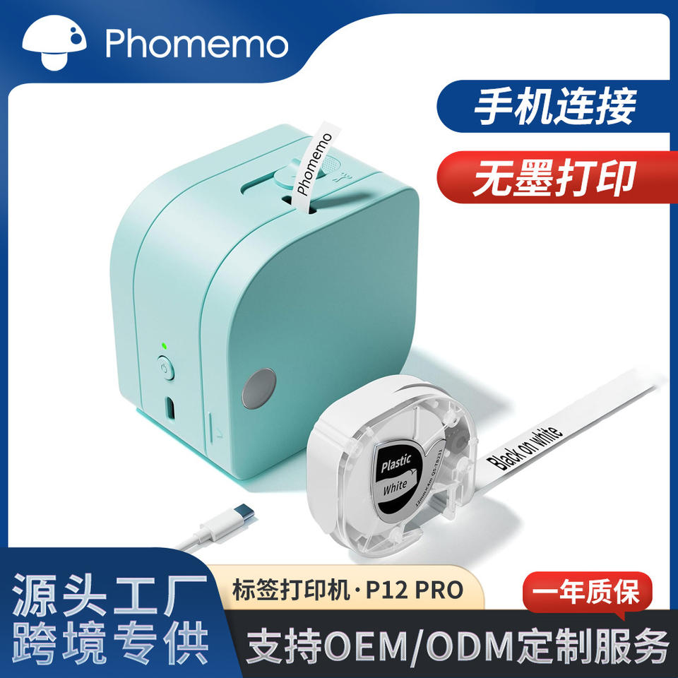 Impresora térmica mini Phomemo P12 PRO de 120 mm, impresión de etiquetas sin tinta con interfaz tipo C para uso doméstico