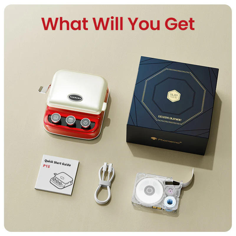 Impresora de Etiquetas Retro Phomemo P15, 203DPI, Bluetooth, Portátil, Mini, Ligera, para Uso en el Hogar y la Oficina