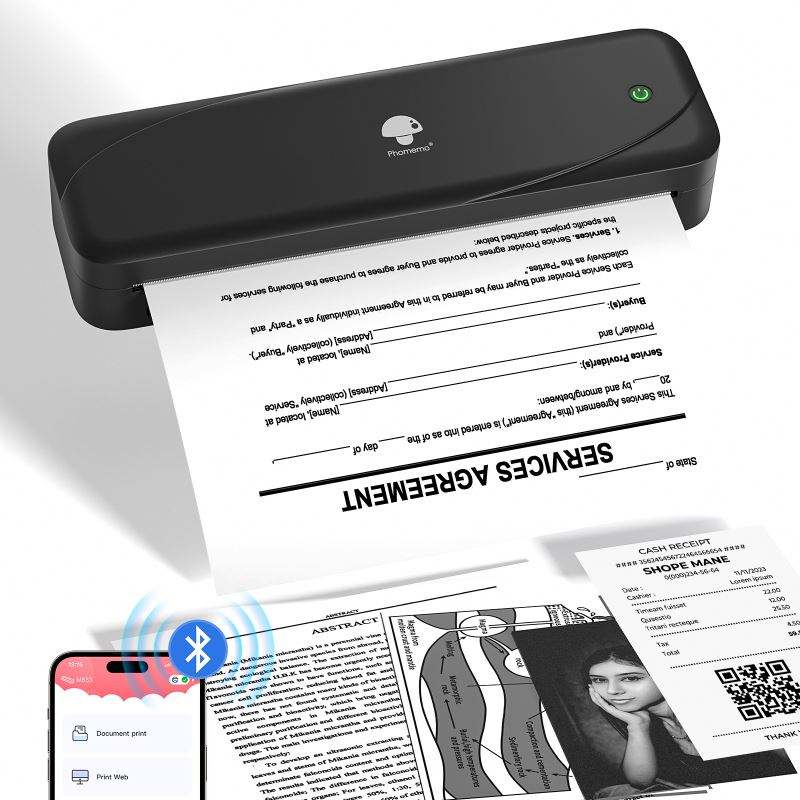Impresoras portátiles Phomemo, impresoras térmicas de dientes azules, impresoras de tamaño A4, máquina de impresión A4 para el hogar/oficina/negocios/tatuaje