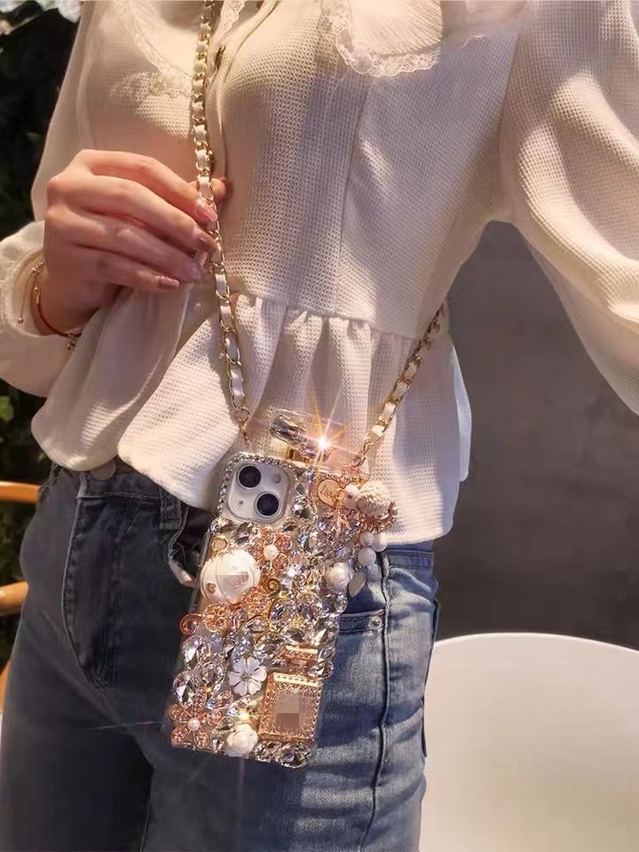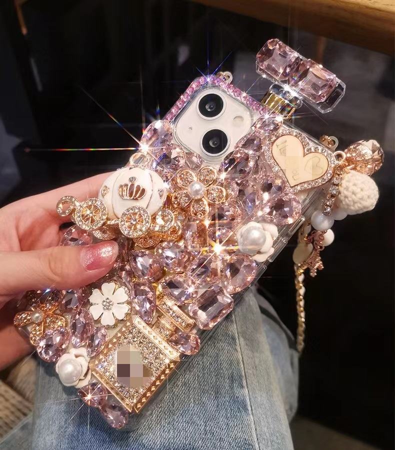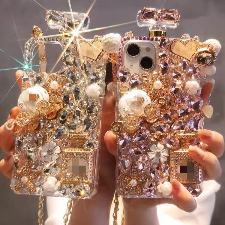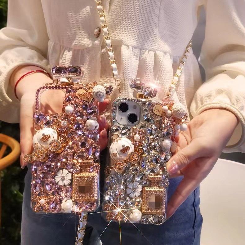 Funda de Lujo de Alta Gama para iPhone 16 Pro Max con Diseño de Botella de Perfume y Carruaje de Calabaza con Pedrería para iPhone 15 14 13 12 Pro Max
