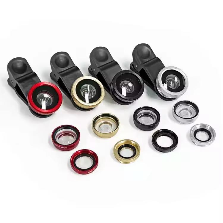 Lente de teléfono Ojo de pez, Macro, gran angular 3 en 1 Lente de teléfono móvil con clip universal para todos los teléfonos inteligentes