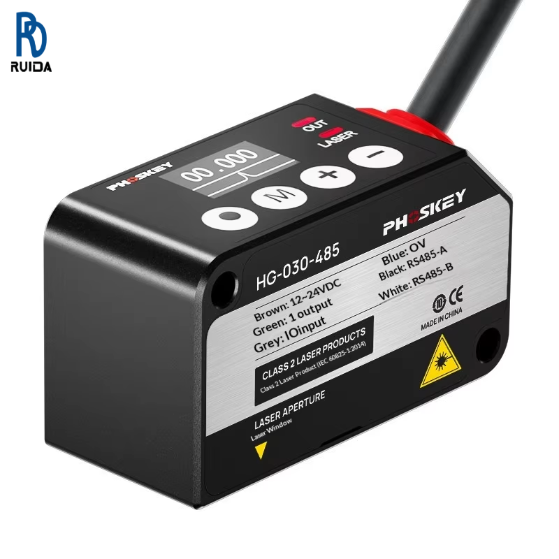 Sensor de Desplazamiento Láser Digital de Alta Precisión Serie HG de Phoskey, RS-485 12V/24V DC, con Pantalla, 30/50/100/200/400/700mm