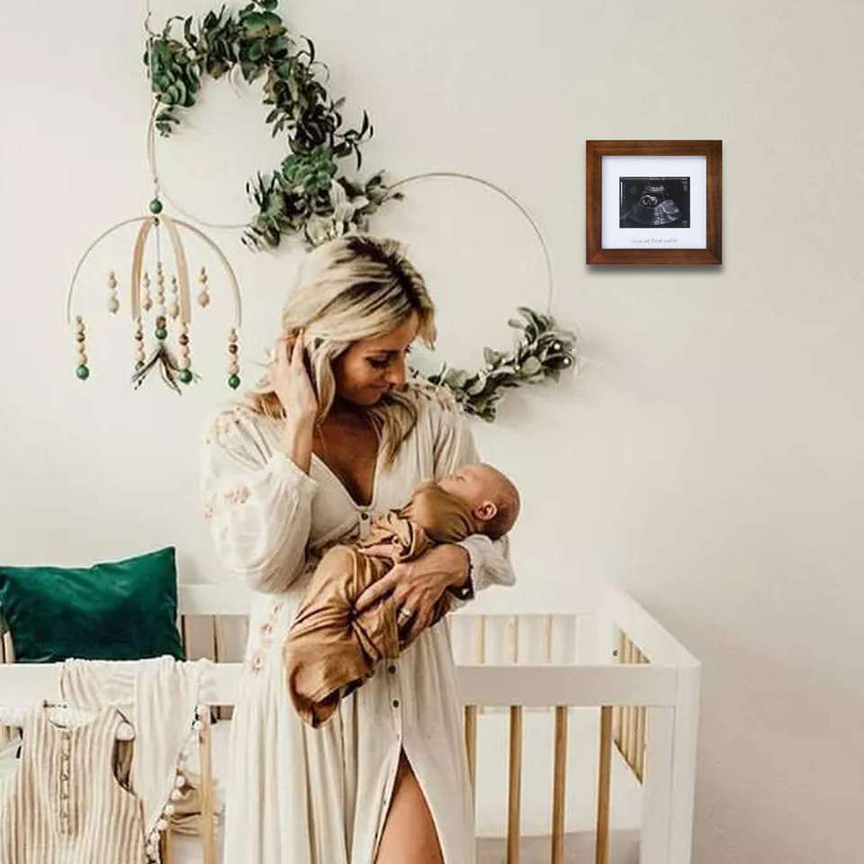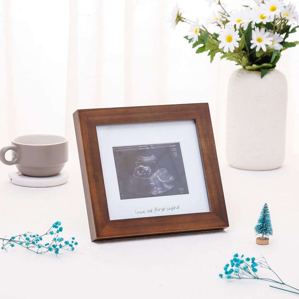 Marco de Fotos para Ecografía de Bebé, Marco de Madera Sólida para Anuncio de Embarazo, Primera Vista de la Imagen del Bebé