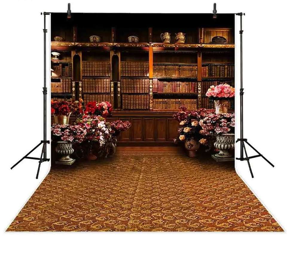 Fotografía telón de fondo vintage estantería biblioteca clásica flor escuela Fondo photocall photobooth estudio Shoot