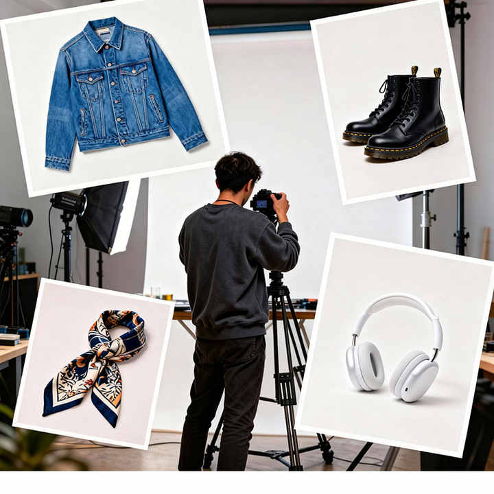 Servicios de Diseño Fotográfico con IA para Comercio Electrónico, Contenido UGC de Página Completa, Accesorios, Grabación de Video, Retoque de Imágenes, Estudio Profesional