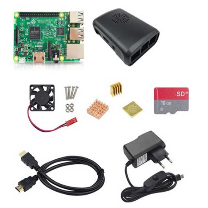 Kit de iniciación Pi3, Raspberry Pi 3 B + carcasa de ABS + ventilador con disipador de calor + tarjeta SD + disipador de calor + + cable adaptador de corriente de 5V 2.5A