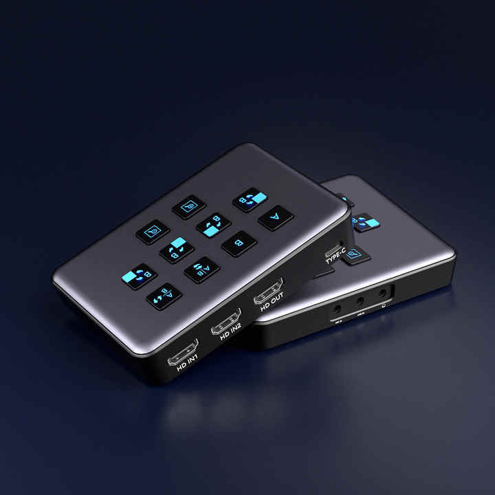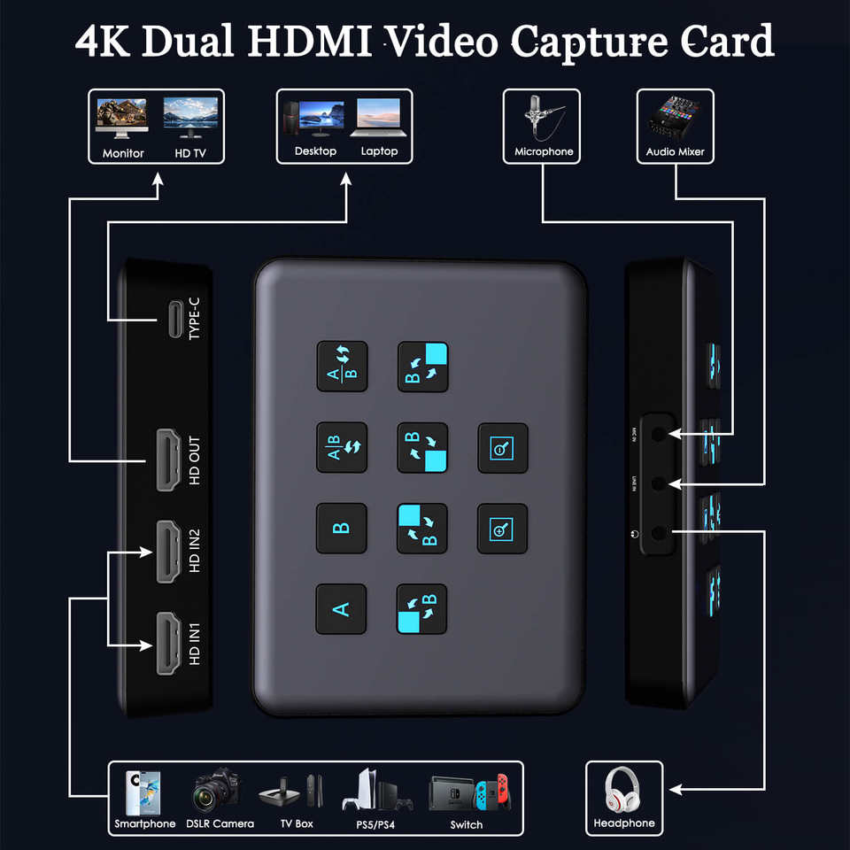 1 * bucle de salida HDMI, 1 * USB-C a la computadora, 1 * auriculares de audioSalida