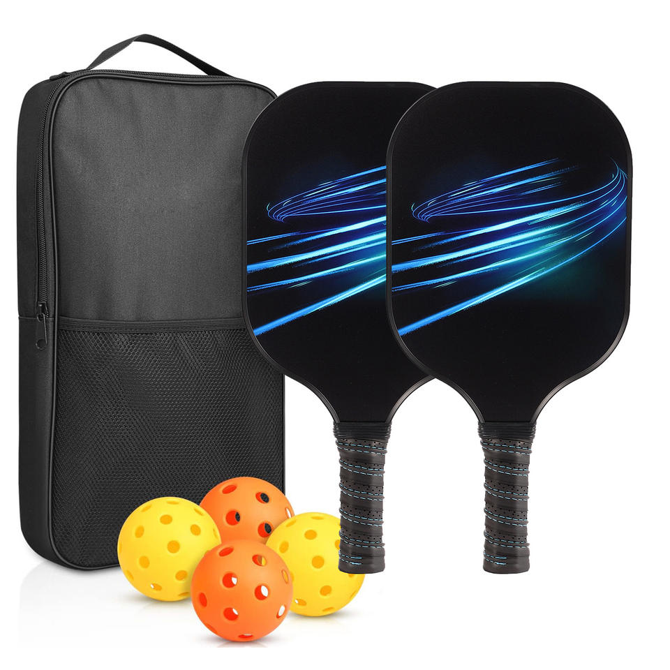 Juego de palas de Pickleball, 2 raquetas, 4 pelotas, bolsa de transporte de nailon, base de fibra de carbono antideslizante para deportes al aire libre