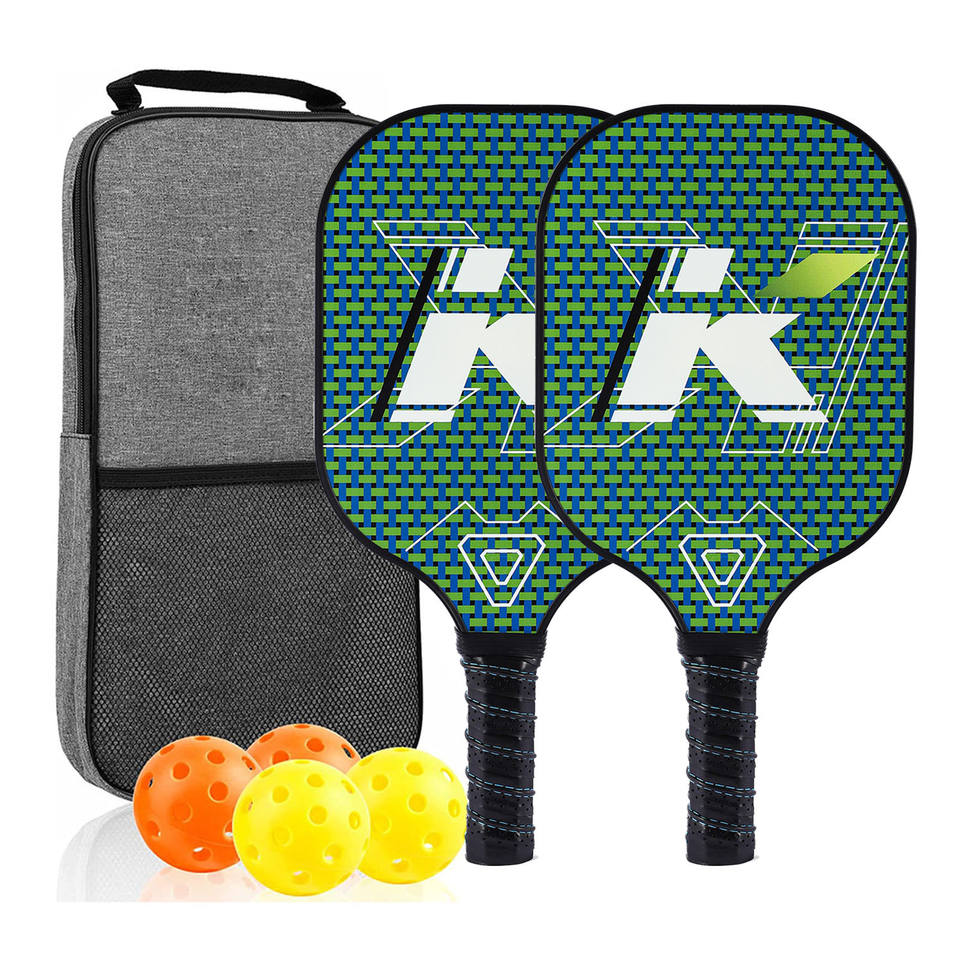 Raquetas de Pickleball de fibra de vidrio, 2 piezas con 4 pelotas, bolsa de transporte, equipo deportivo antideslizante para exteriores