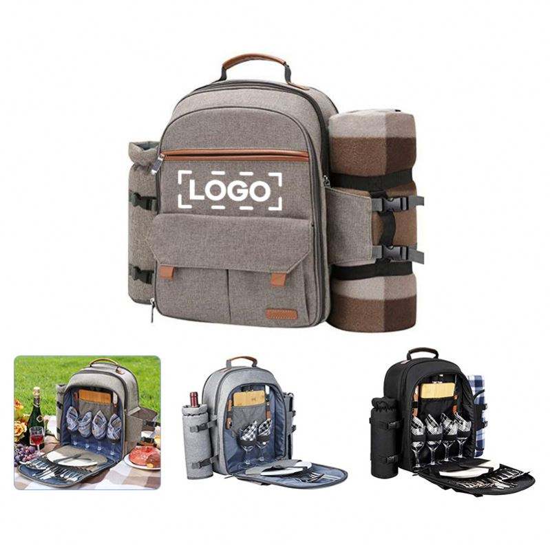 Mochila de Picnic para 4 Personas con Manta, Canasta de Picnic para 2 con Bolsa Térmica y Compartimento para Vino, Ideal para Familias y Parejas
