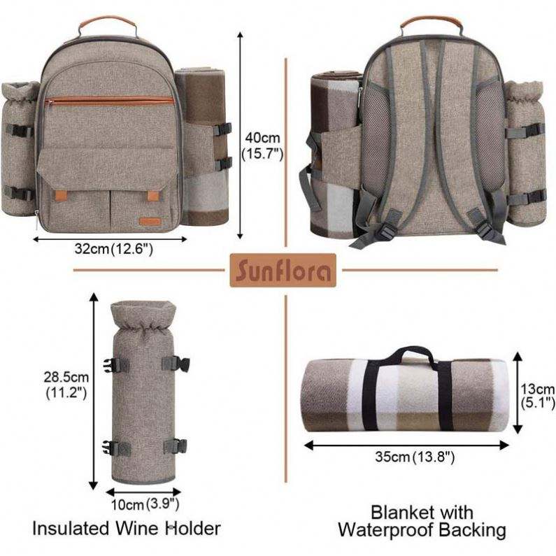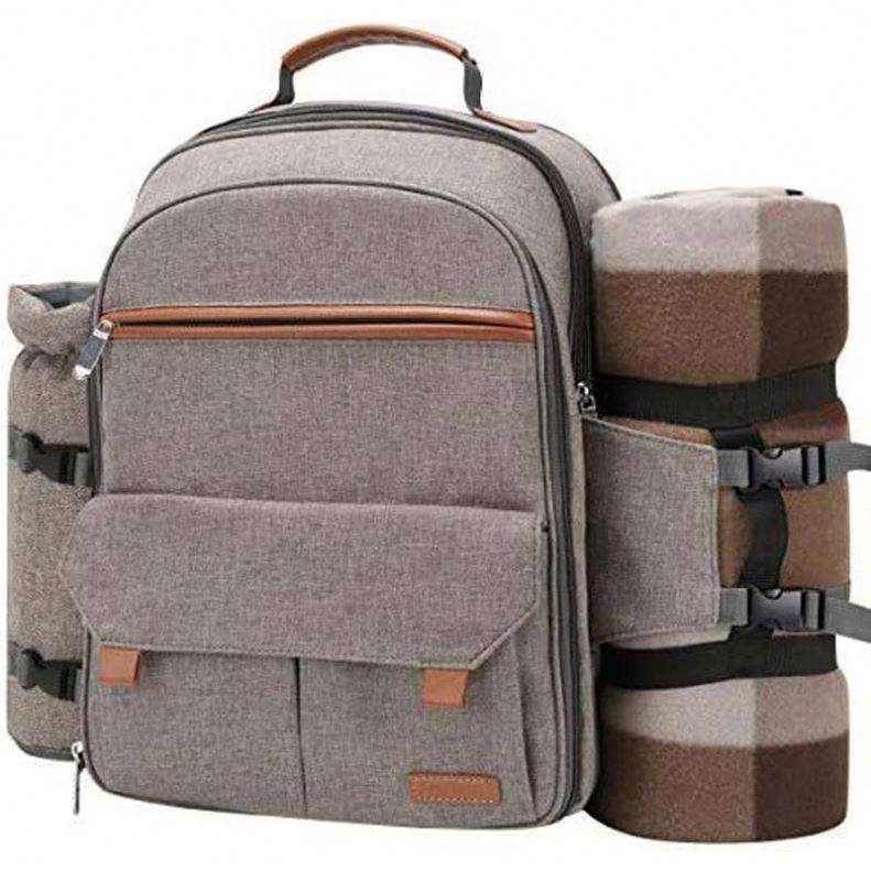 Mochila de Picnic para 4 Personas con Manta, Canasta de Picnic para 2 con Bolsa Térmica y Compartimento para Vino, Ideal para Familias y Parejas