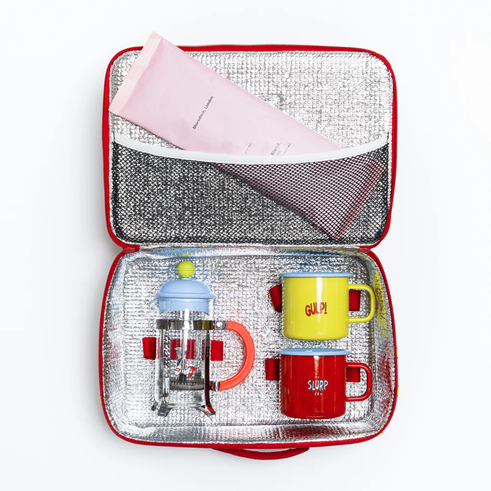 El Paquete de bolsas enfriadoras para picnic incluye café molido de grado de prensa francesa y tazas para acampar al aire libre