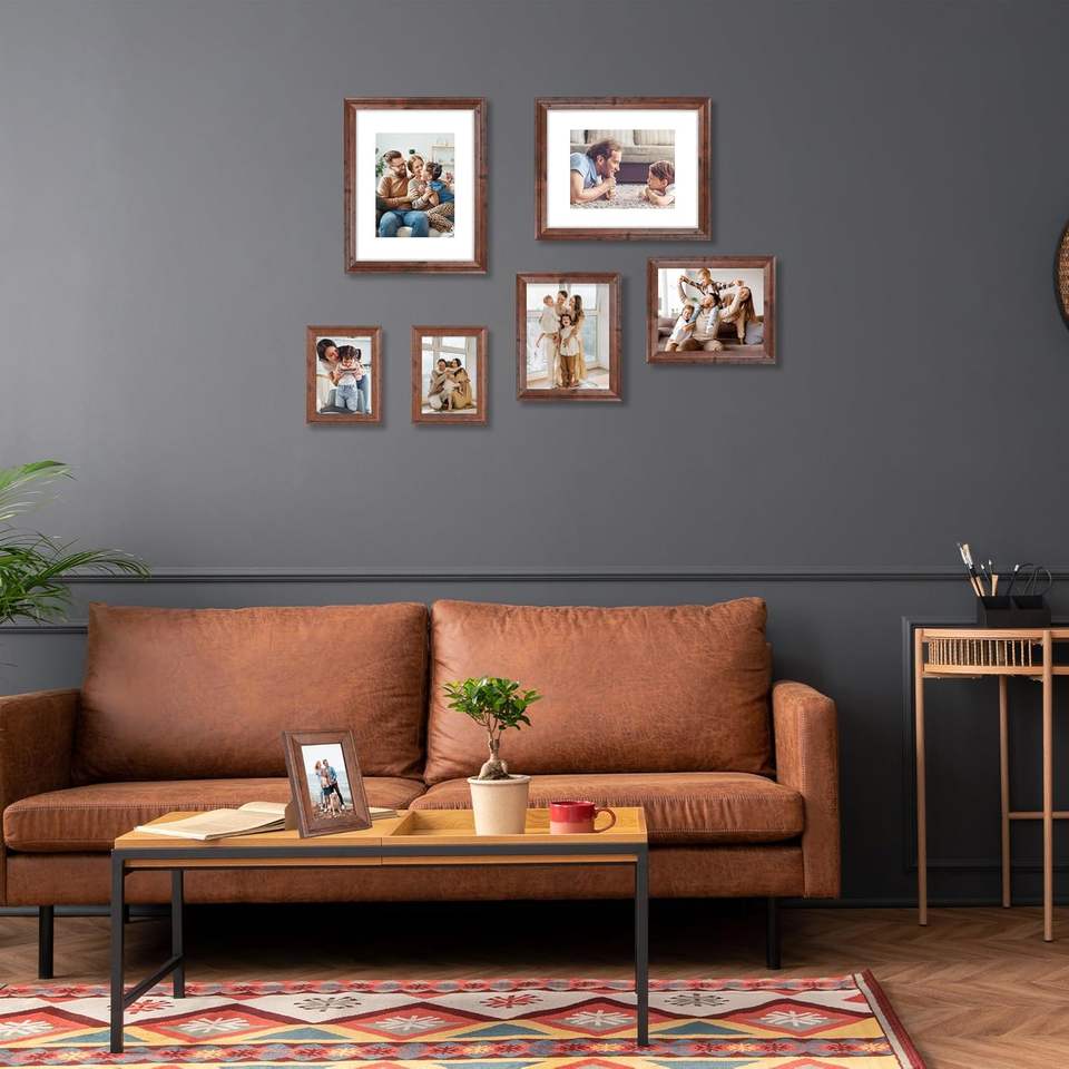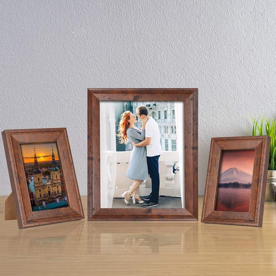 Marco de Fotos Marrón Rústico Vintage con Vidrio Real para Montaje en Pared y Sobremesa
