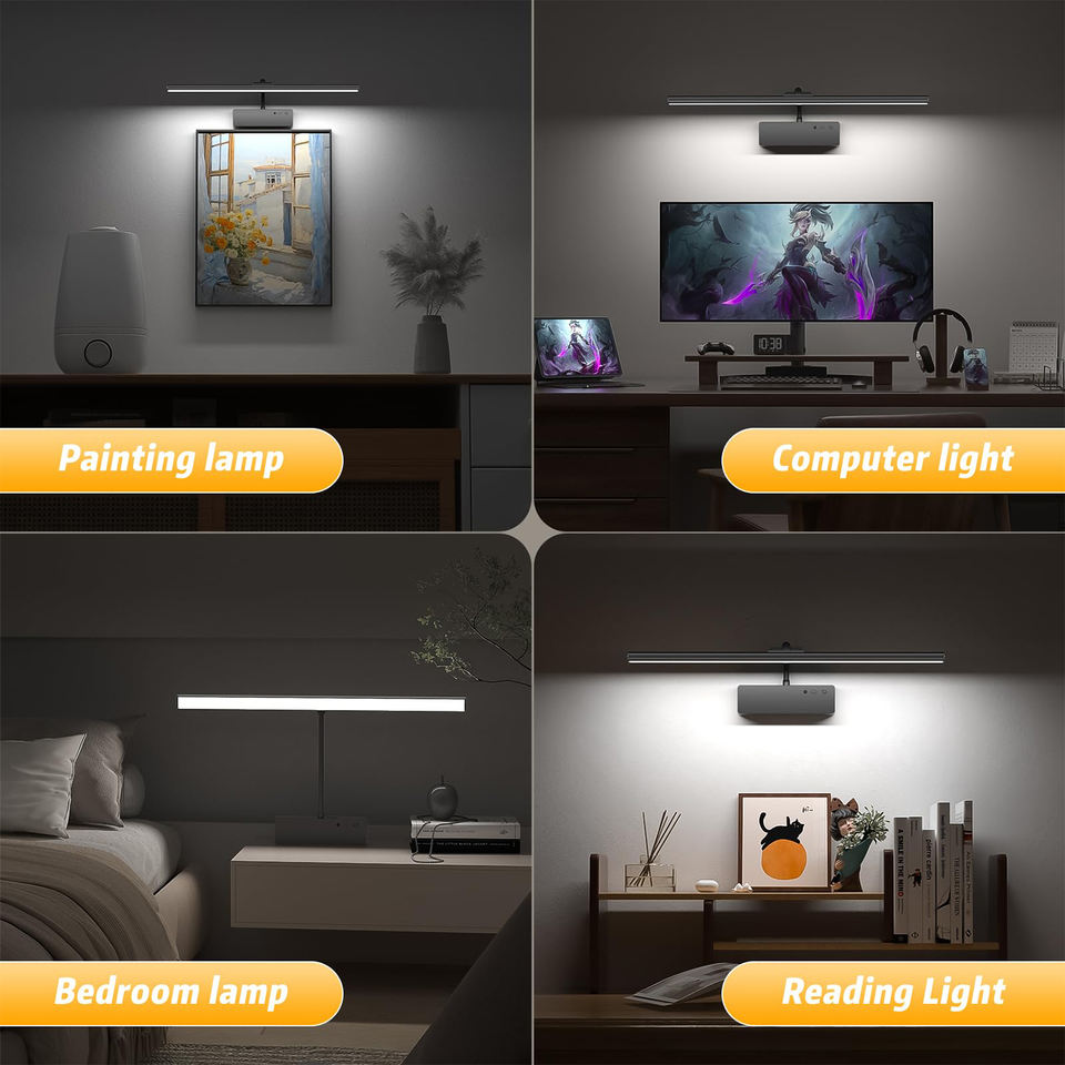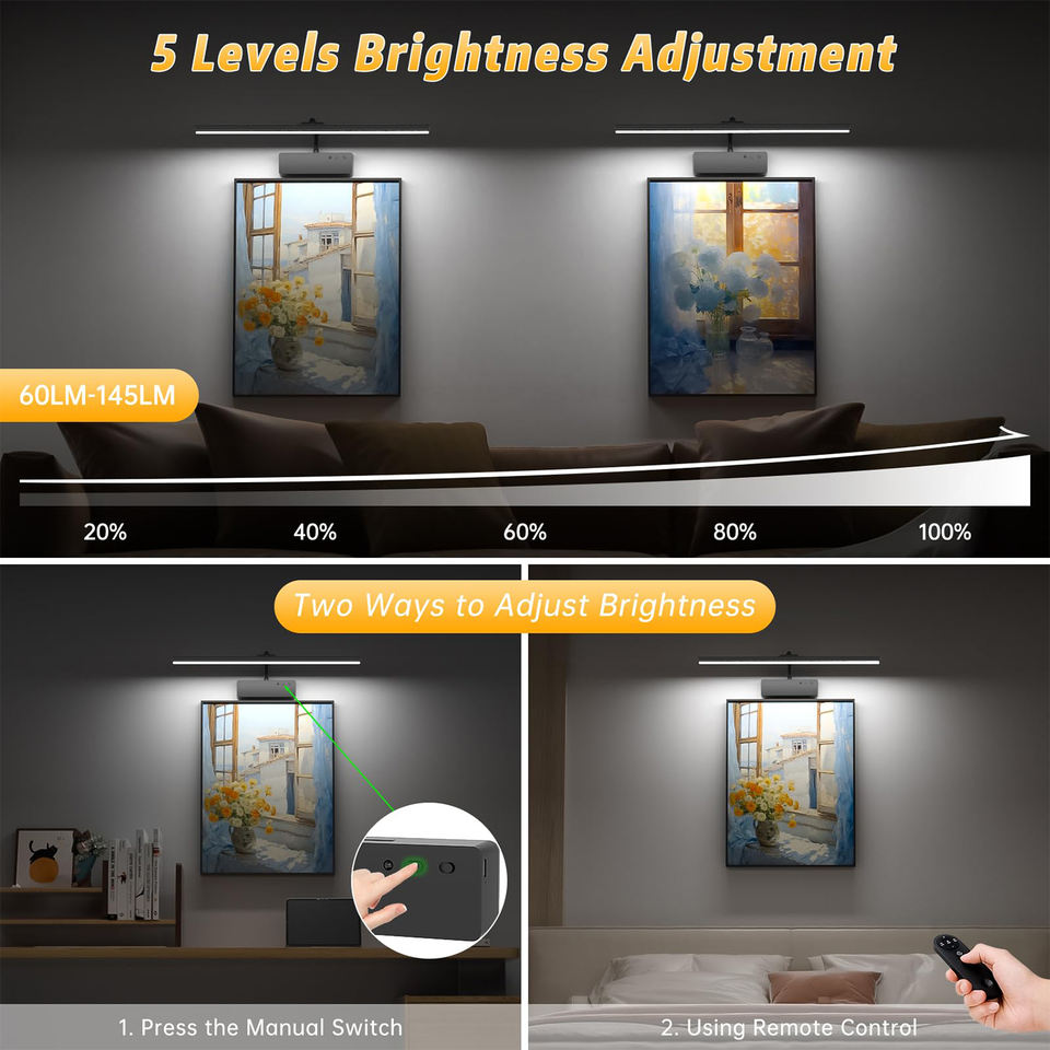 Lámpara de Pared para Cuadros, Recargable, Inalámbrica, con Control Remoto, 20 Pulgadas, LED Magnética Regulable, para Galería, Sala de Estar