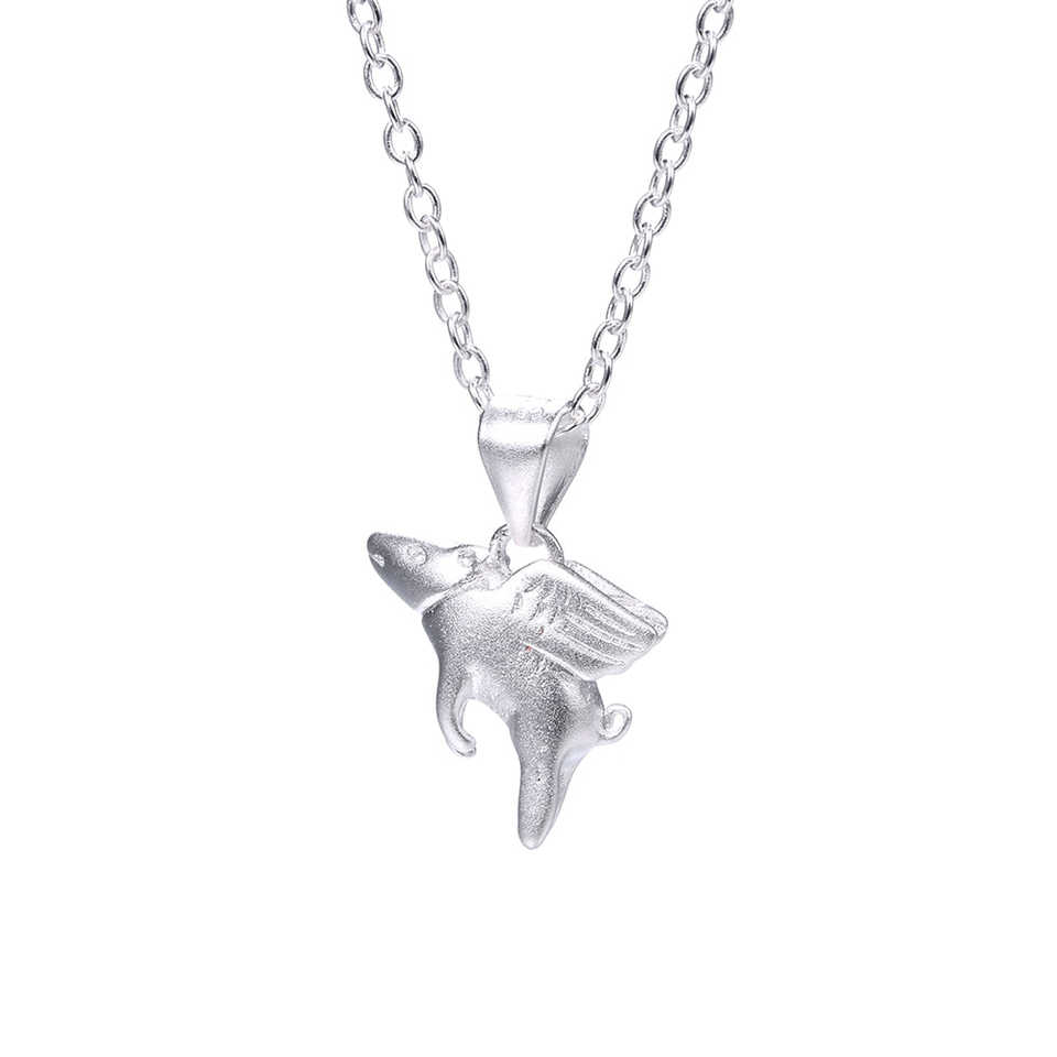 Collar 'Pigs Fly' de Plata de Ley con Rodio, Circonita, Diamante, Perla, Oro, Oro Rosa y Cadenas, Diseño de Animal y Letra, Moderno, para Compromiso