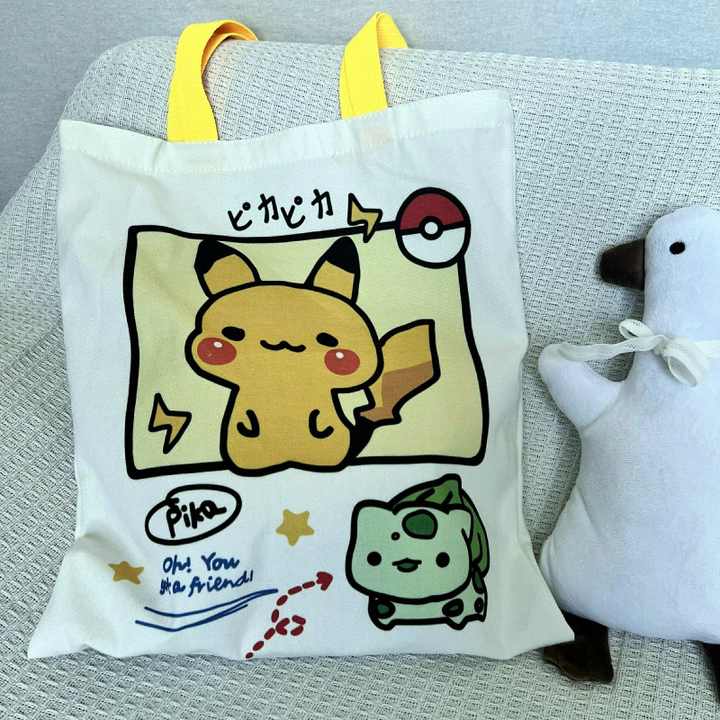Mochila de lona Pikachu de gran capacidad con un solo hombro
