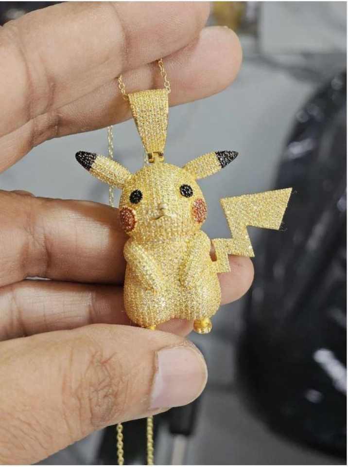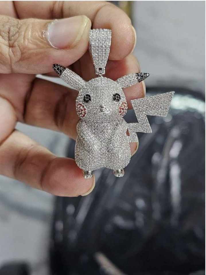 Llavero con Colgante de Personaje de Dibujos Animados de Pikachu Pokemon, Plata de Ley 925, Moissanita, Lujoso y Lindo, Figura de Psyduck y Squirtle
