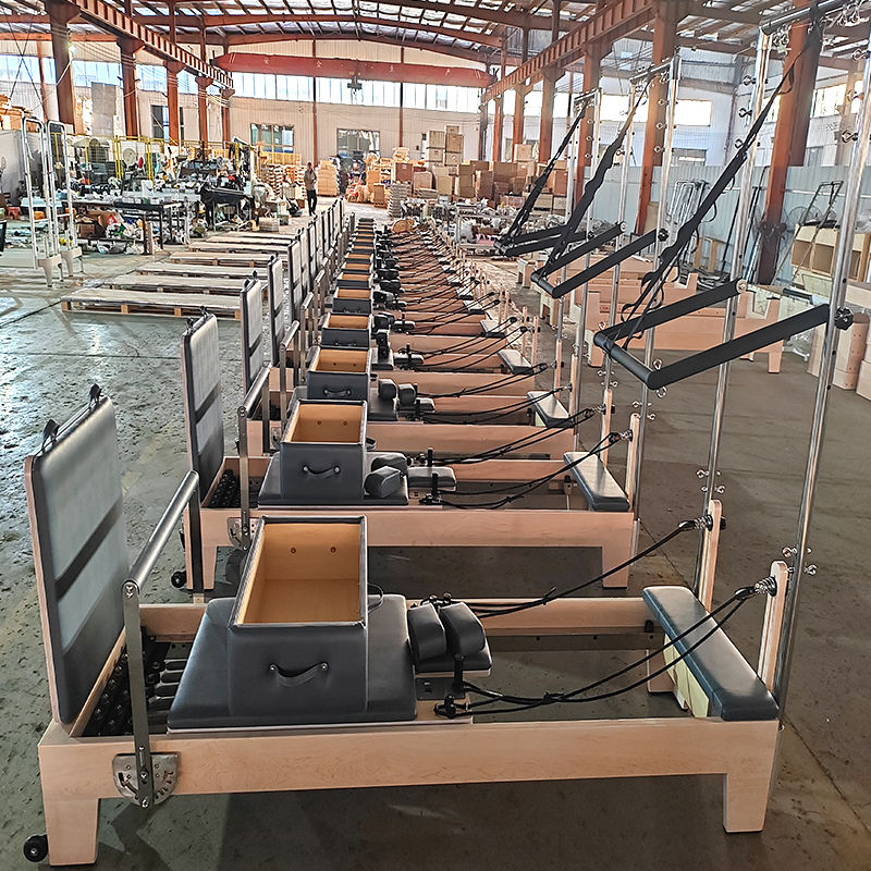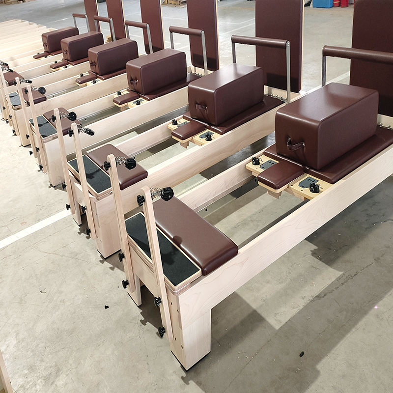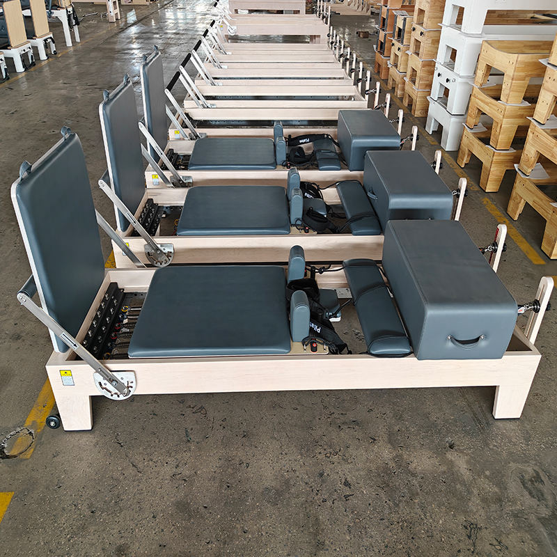 Equipo de Entrenamiento de Pilates para el Core, Juego Completo, Logotipo Personalizado, Reformer de Pilates de Madera de Arce con Patas de Madera Desmontables, Duradero