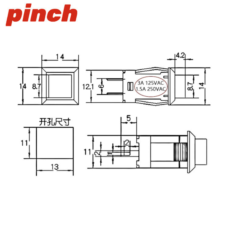 Interruptor de Botón Pulsador Pinch DS-429 1NO 250V 3A Terminal de Soldadura Plástico IP40