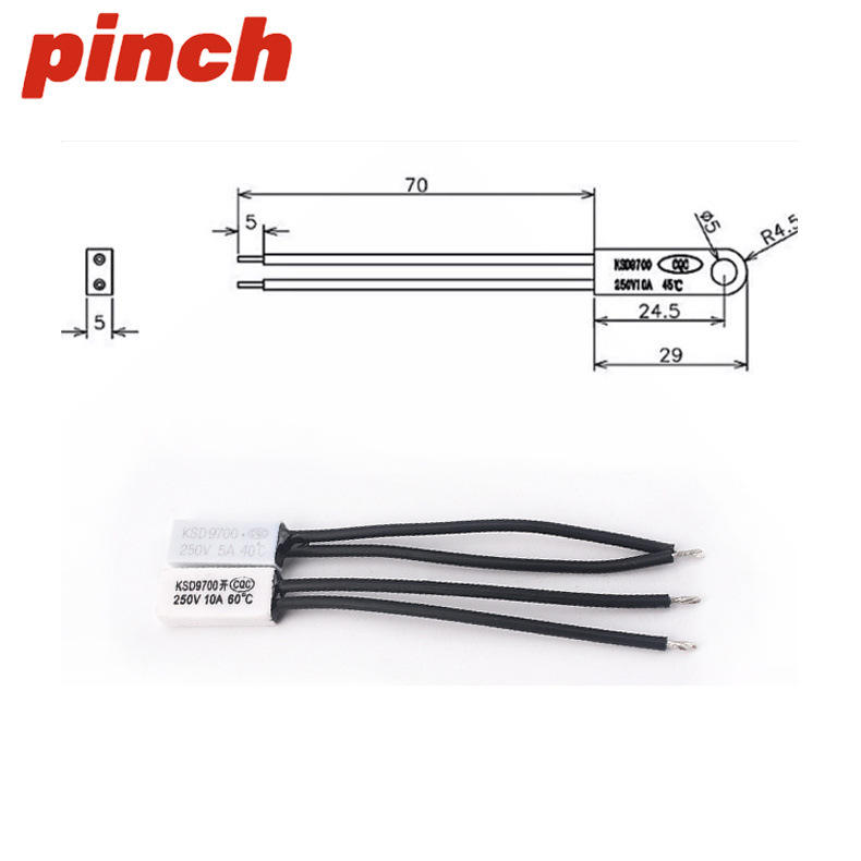 Interruptor de Control de Temperatura Pinch Ksd9700 250V 5A 105C Normalmente Abierto, Protector Térmico Metálico para Dispositivos de Calefacción